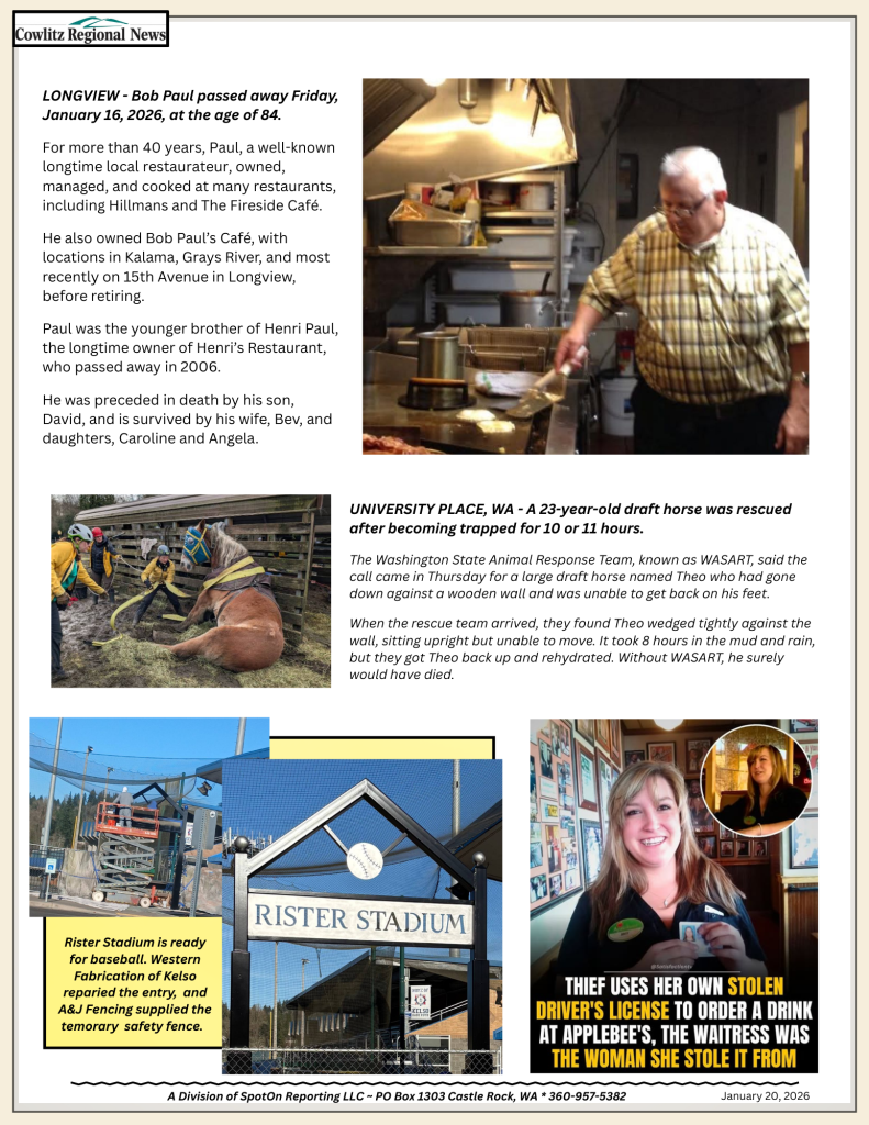 • Cowlitz County Police Blotter 2/6/2026 to 2/12/2026