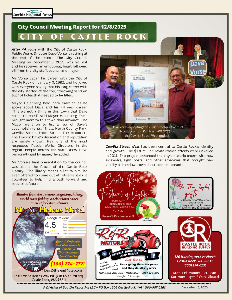 • Castle Rock – Public Works Director Dave Vorse Retires After 44 Years