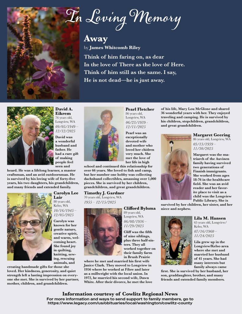 • Cowlitz County Obituaries December 21, 2025
