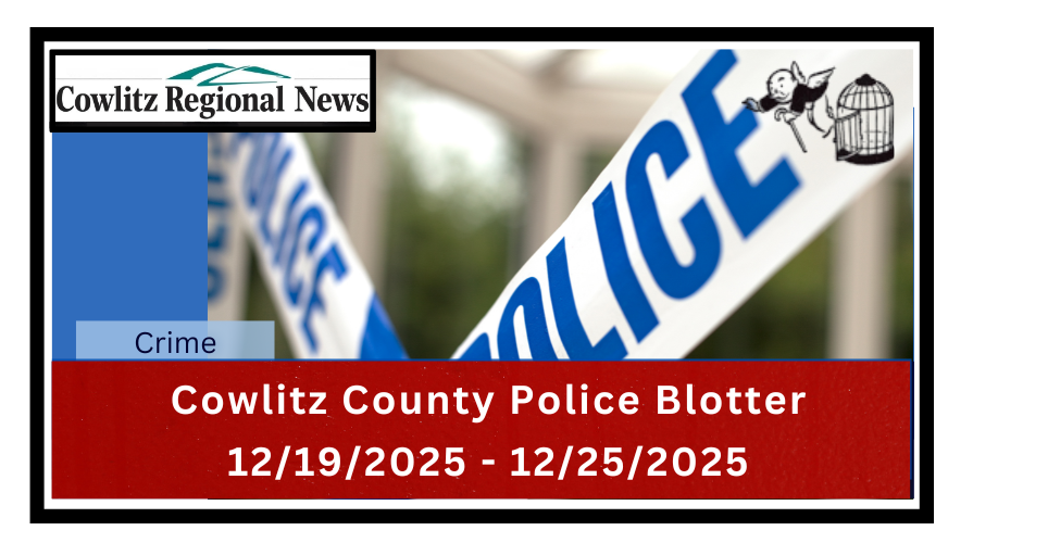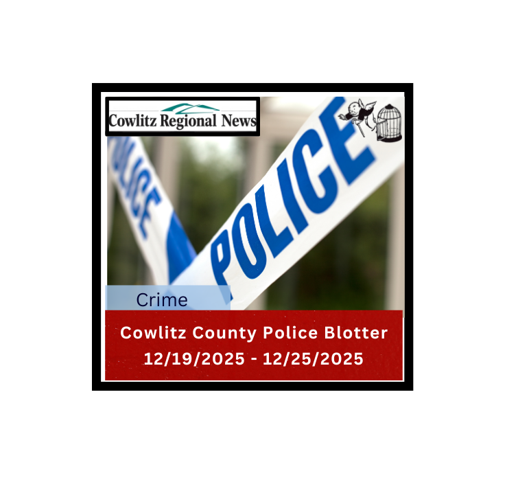 The police departments were extra busy this Christmas week: 48 people were booked into jail, and Longview had multiple calls, including a food delivery driver chased around 3:30 AM on Christmas Eve. Woodland had a suspicious abduction; witnesses reported a woman being pushed into a car near exit 21. We had a fugitive detained in downtown Kalama, and Yacolt even chimed in with a non-injury airplane crash too.