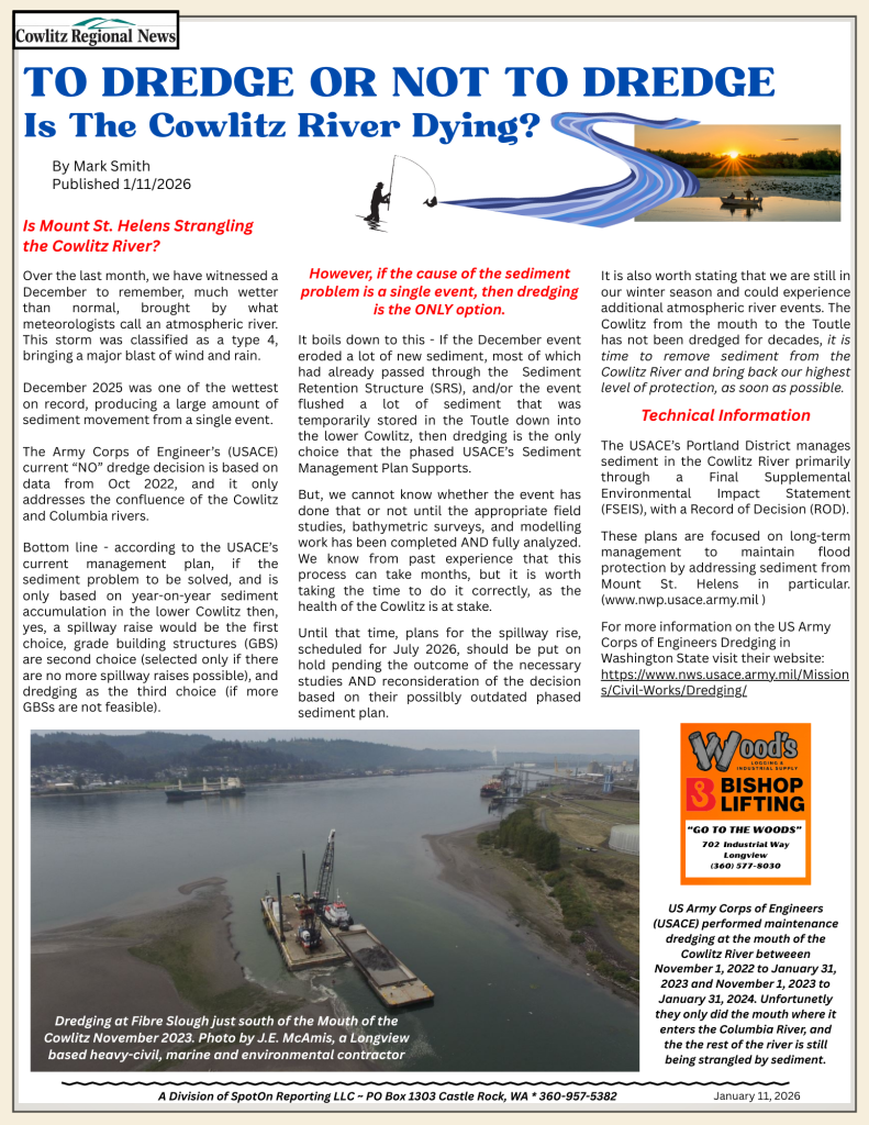 NewsIs the Cowlitz River Dying Guest Article3 weeks ago3 weeks ago01 min Post navigation Previous: Castle Rock – Sewer Line Sinkhole CollapseNext: Fish Recovery – Mt St Helens & the North Fork Toutle River, 45 years in the making Leave a Reply Cancel replyYour email address will not be published. Required fields are marked *Comment * Name * Email * Website Save my name, email, and website in this browser for the next time I comment.