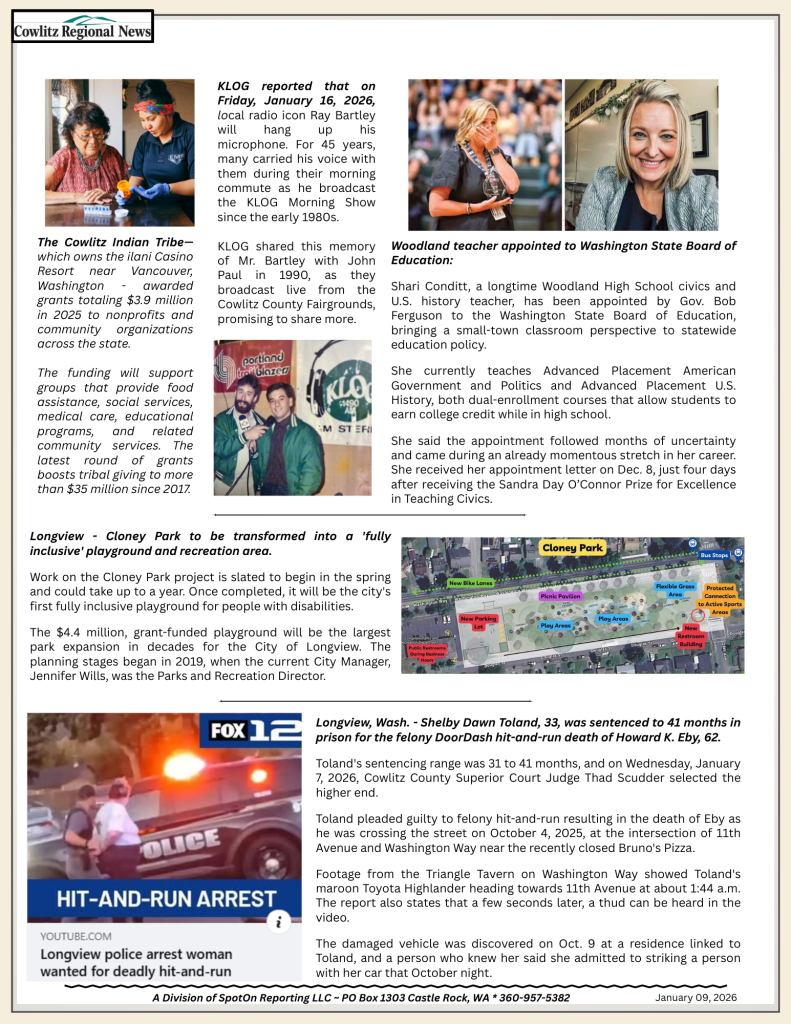 NewsDoor Dash hit and run killer sentenced to 41 months in prison Guest Article2 weeks ago2 weeks ago01 min Post navigation Previous: Longview Elects New Mayor, County Extends Gun Range LeaseNext: Cowlitz County welcomes the first baby of 2026 at PeaceHealth St. John Medical Center! Leave a Reply Cancel replyYour email address will not be published. Required fields are marked *Comment * Name * Email * Website Save my name, email, and website in this browser for the next time I comment.