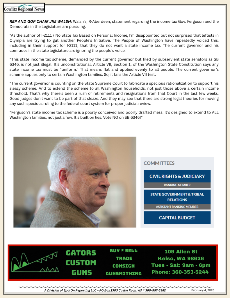NewsState Income Tax Unconstitutional Guest Article3 weeks ago3 weeks ago01 min Post navigation Previous: WA Legislature Proposal Guts Local Camping Bans in Public SpacesNext: Remembering an American Hero – Former Navy Seal Chris Kyle Leave a Reply Cancel replyYour email address will not be published. Required fields are marked *Comment * Name * Email * Website Save my name, email, and website in this browser for the next time I comment.