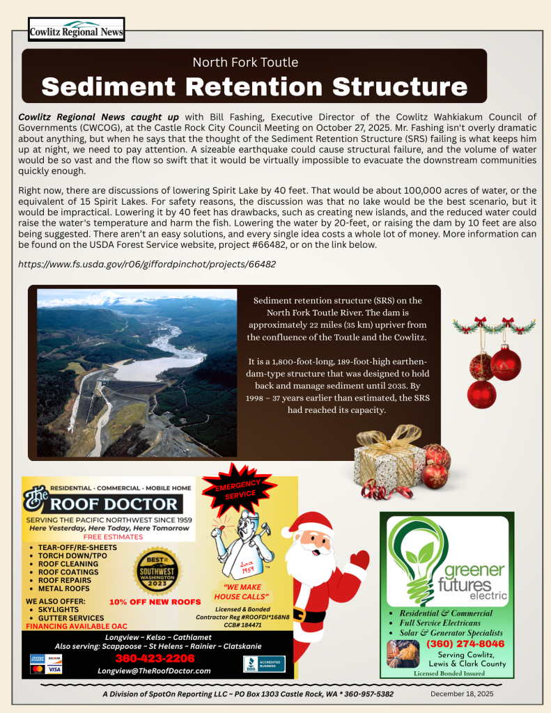 I urge you to get involved; it is your river and land, share your thoughts on how we should live with its risks and benefits. For more information, Google Mt St Helens N Fork Toutle River Sediment Management Plan, or visit the Spirit Lake Toutle Cowlitz River Collaborative website.