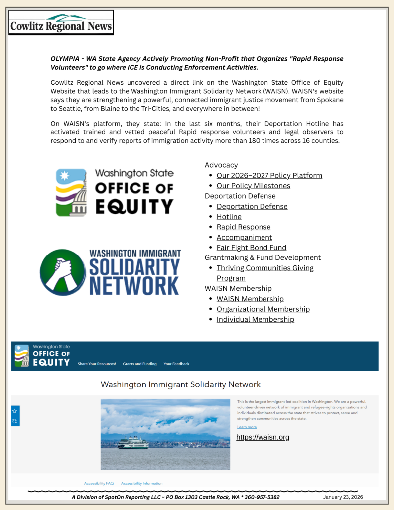 NewsWA State promotes non-profit that organizes “Rapid Response” teams to observe ICE enforcement activities Guest Article2 weeks ago2 weeks ago01 min Post navigation Previous: Burlington expected to open in vacant Joann’s Fabrics building in late springNext: Ranked choice voting – what a mess, so of course Olympia wants it here Leave a Reply Cancel replyYour email address will not be published. Required fields are marked *Comment * Name * Email * Website Save my name, email, and website in this browser for the next time I comment.