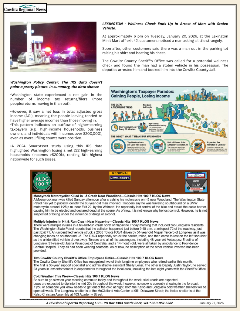• Cowlitz County Police Blotter 2/13/26 – 2/19/26